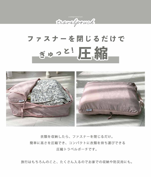 【今なら57%オフ!1,280円】M・L 2点セット 圧縮 トラベルポーチ 収納ポーチ 圧縮袋 簡単圧縮 旅行 圧縮ポーチ 衣類 収納 衣類圧縮袋 コンパクト ファスナー 国内旅行 海外旅行 メンズ レディース 便利グッズ 送料無料 生活雑貨