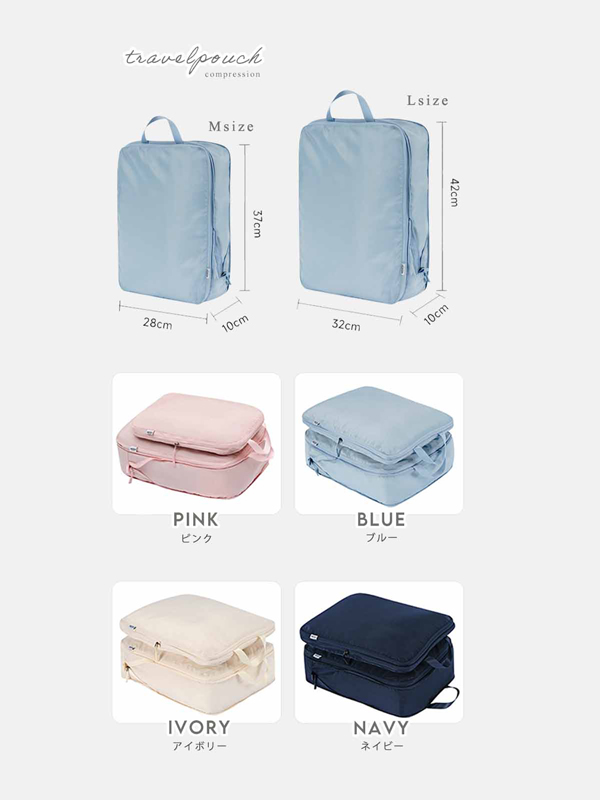 圧縮トラベルポーチMサイズとLサイズの2点セットです。