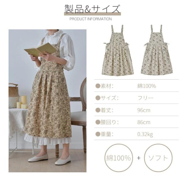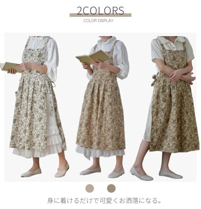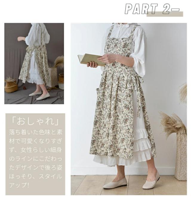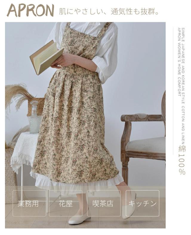 北欧風 エプロン ドレスエプロン レディースワークエプロン ロングエプロン カフェエプロン ワンピースエプロン H型 前掛け 細見え おしゃれ 綿100% 無地 防水 ネコポス送料無料!