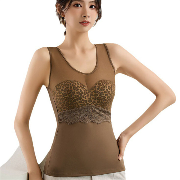ポイント超超祭 爆売中 セール ブラトップ タンクトップ カップ付きタンクトップ レース ヒョウ柄 ボディスーツ カップ付き ソフト 快適 フルカップ 綿混
