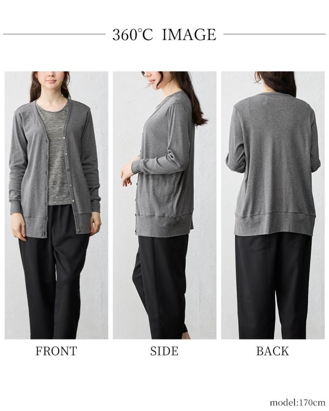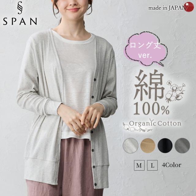 日本製 レディース オーガニックコットン カーディガン トップス カットソー 羽織り カーディガン アウター 長袖 クルーネック 春夏 綿 コットン UV 紫外線対策 ウォッシャブル 洗える きれいめ オフィスカジュアル 事務服