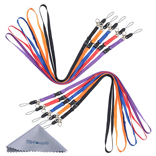 ネックストラップ Wisdompro 首かけ 平紐 落下・紛失防止 携帯/スマホ・名札・USBメモリ・キー・マスコット・ホイッスル・笛用 バックル式 着脱機能 カニカン・松葉付き 【10本組 5色】