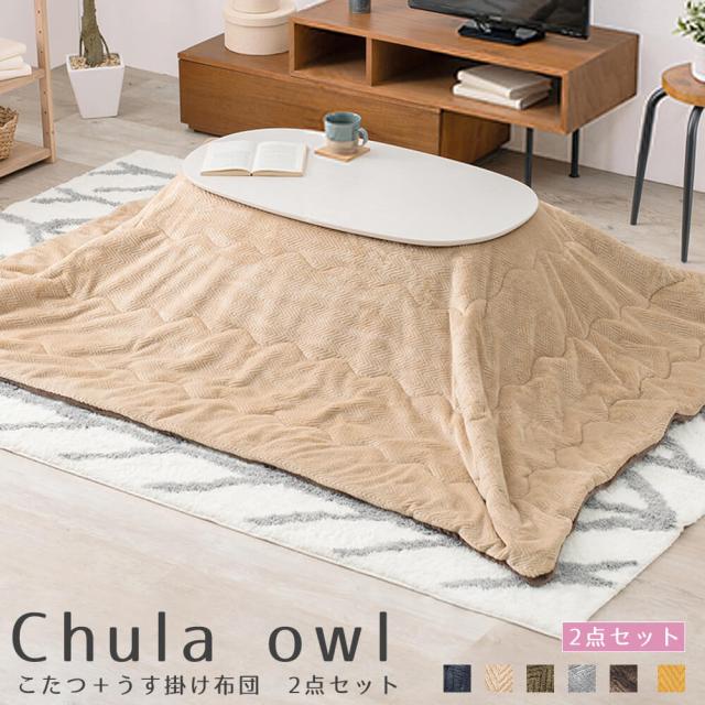 なめらかな肌触りが心地いい、軽くてかさばらないうす掛けタイプのこたつ掛けふとん owl(オウル)のこたつセット。