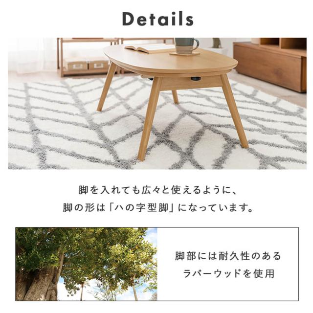 木目調の天板やハの字型の脚などオシャレなフォルムなのでコタツには見えないデザイン。