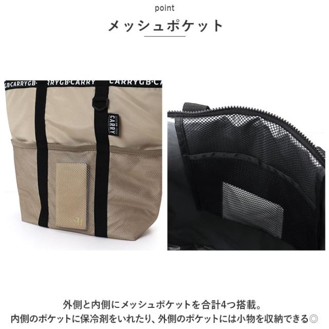 gb-carry ジービーキャリー 保冷 トートバッグ 通販 トートバック トート エコバッグ エコバック 保温 大きめ ファスナー 耐久性 クッション メッシュ ポケット 大きい 2L ペットボトル 買い物 アウトドア レジャー スポーツ