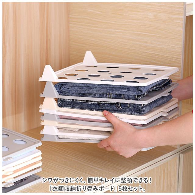衣類収納ボード 通販 折り畳みボード 洋服収納ボード 5枚セット セット 衣類 収納 ボード トレー 折りたたみ 省スペース 通気性 型崩れ シワ防止 Tシャツ シャツ ズボン スカート