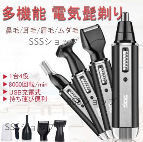 電気シェーバー 男性用 1台4役 鼻毛カッター 充電式 耳毛カッター 女性 多機能 電気髭剃り 鼻毛切り 電動式 鼻毛シェーバー 持ち運び便利