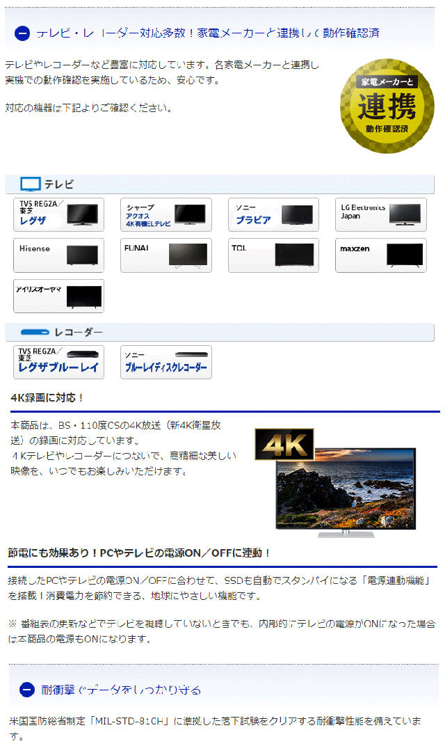 | テレビ対応機種 | TVS REGZA/東芝液晶テレビ「レグザ」、シャープ液晶テレビ「アクオス」、ソニー液晶テレビ「ブラビア」、LG Electronics Japan 液晶テレビ、Hisense「ハイセンス」、TCL液晶テレビ、FUNAI液晶テレビ、maxzen液晶テレビ、アイリスオーヤマ液晶テレビ |