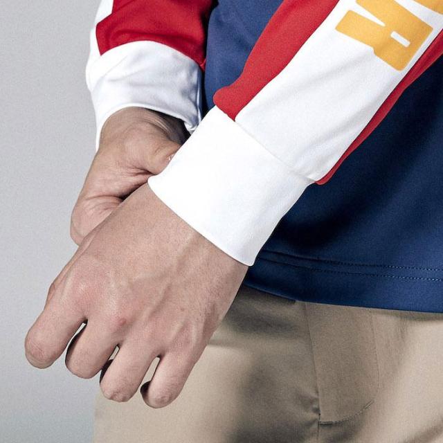 ・クレイジーな配色や、フロントの大胆なグラフフィック、袖のロゴプリントなど1枚でも映えるデザインが魅力です