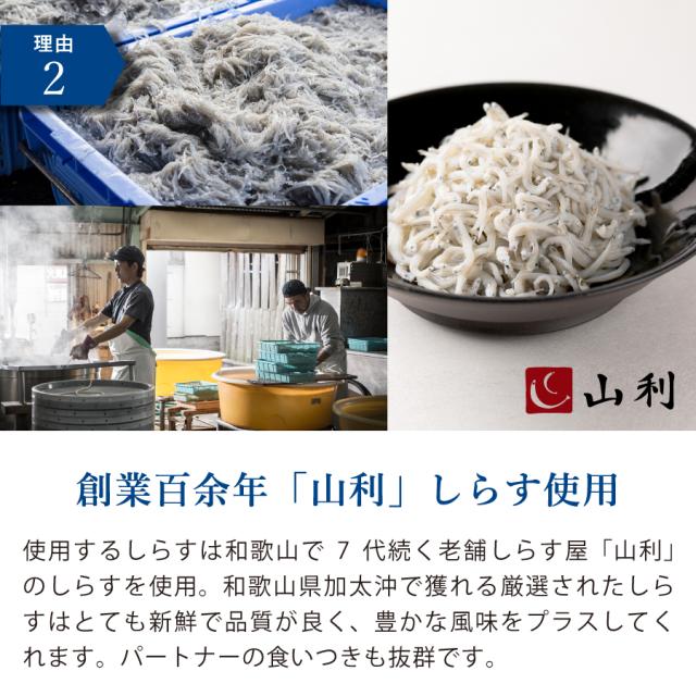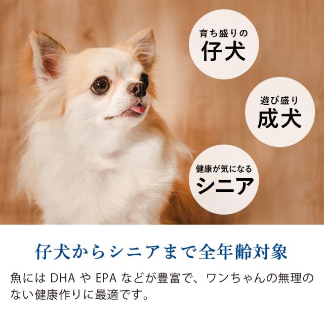 自然豊な和歌山県加太沖で獲れる最高級の「山利しらす」を加え、風味豊かなプレミアムドッグフードに仕上げました。