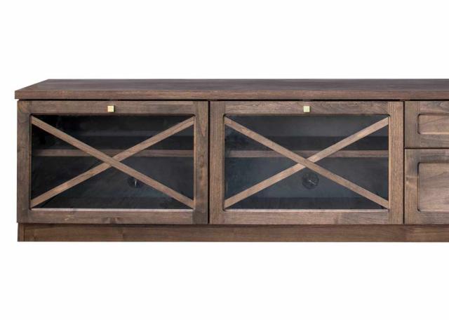 中に入れる家電などを引き立てる、美しい額縁のようなデザインのローボードです。主張しすぎない美しさと実直な佇まいでお部屋に馴染みます。山の女王と呼ばれるスイスの山脈「リギ」から名付けられたシリーズです。
