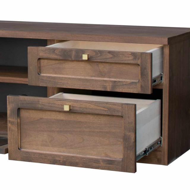 前板にはアルダー無垢材が使用されており、天然木のあたたかみを感じることができます。上段の引出しには小物、下段の引出しにはCDやDVDなどを収納することができます。