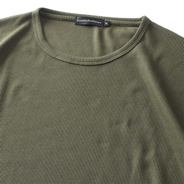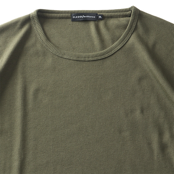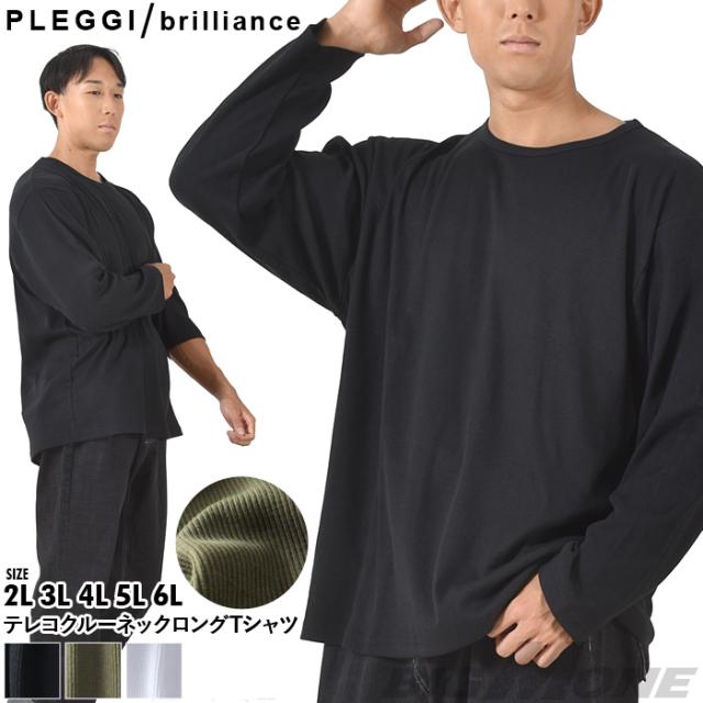 大きいサイズ メンズ PLEGGI プレッジ テレコ クルーネック ロング Tシャツ 63-76307-2