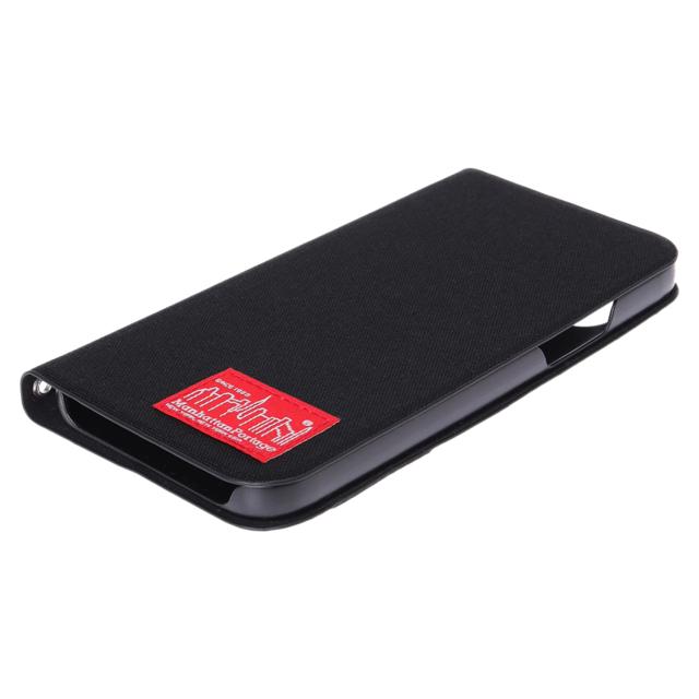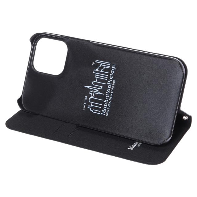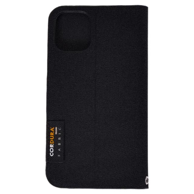 マンハッタンパッセージのiPhone 12mini スマホケースです。表面にはCORDURA NYLONの500デニールを採用し、バッグのDNAが存分に踏襲されています。内側はカードを2枚収納でき、動画を見るなどの際に便利なスタンド機能も搭載しています。ストラップが装着可能のハトメも付属しており機能性抜群です。こちらは、ブラックのカラーにブランドタグを配した手帳型のモデルです。