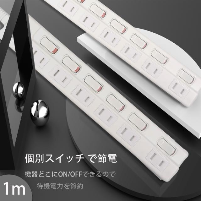 個別スイッチ 過熱保護 過電圧保護 電源タップ 雷ガード おしゃれ ホワイト 1m 180度スイングプラグ OAタップ 電気節約 延長ケーブル
