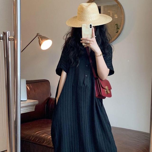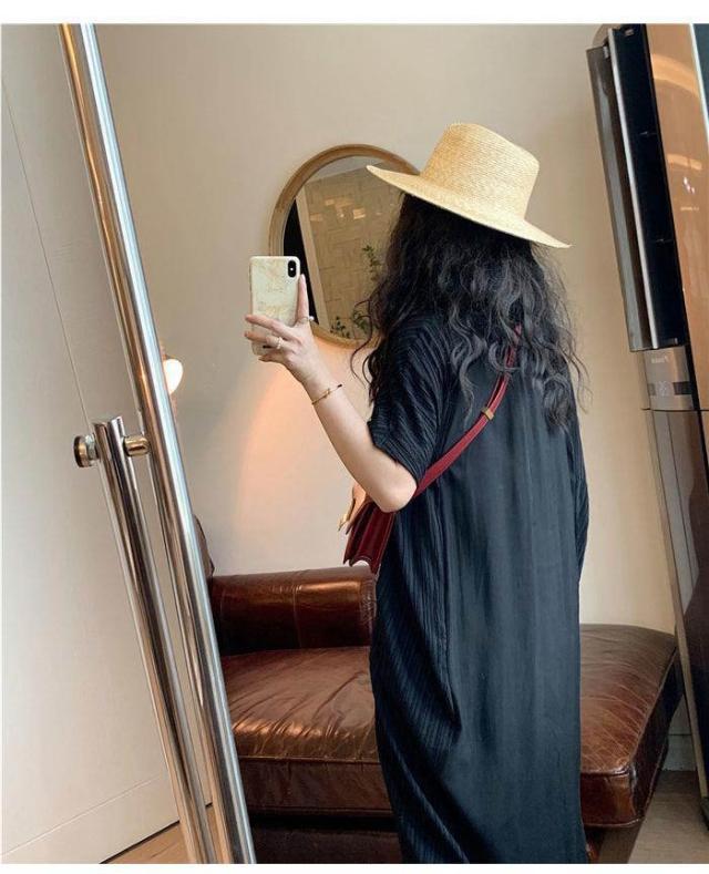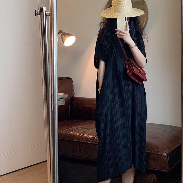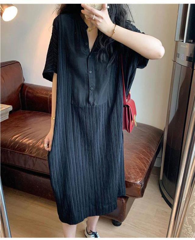 ワンピース レディース 大人 可愛い エレガント Aライ vネック 半袖 黒 着痩せ 型紙 膝丈 通勤 無地 ゆったり きれいめ ロング 前開き 上品 春 夏 秋