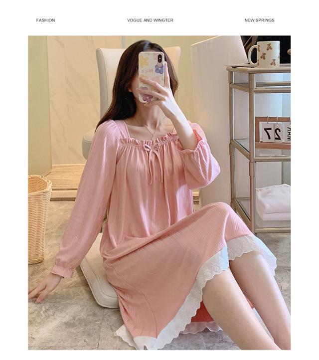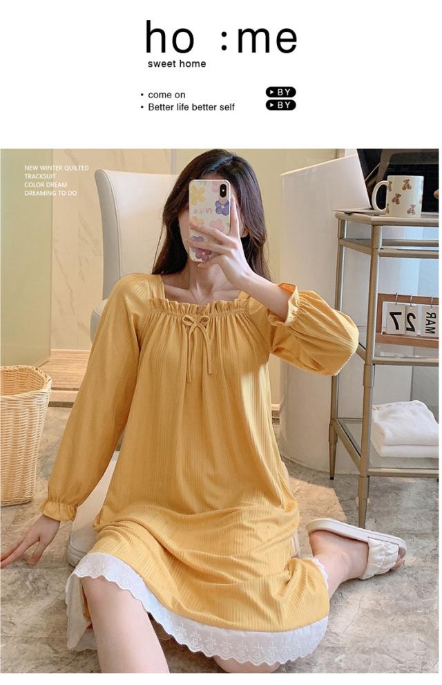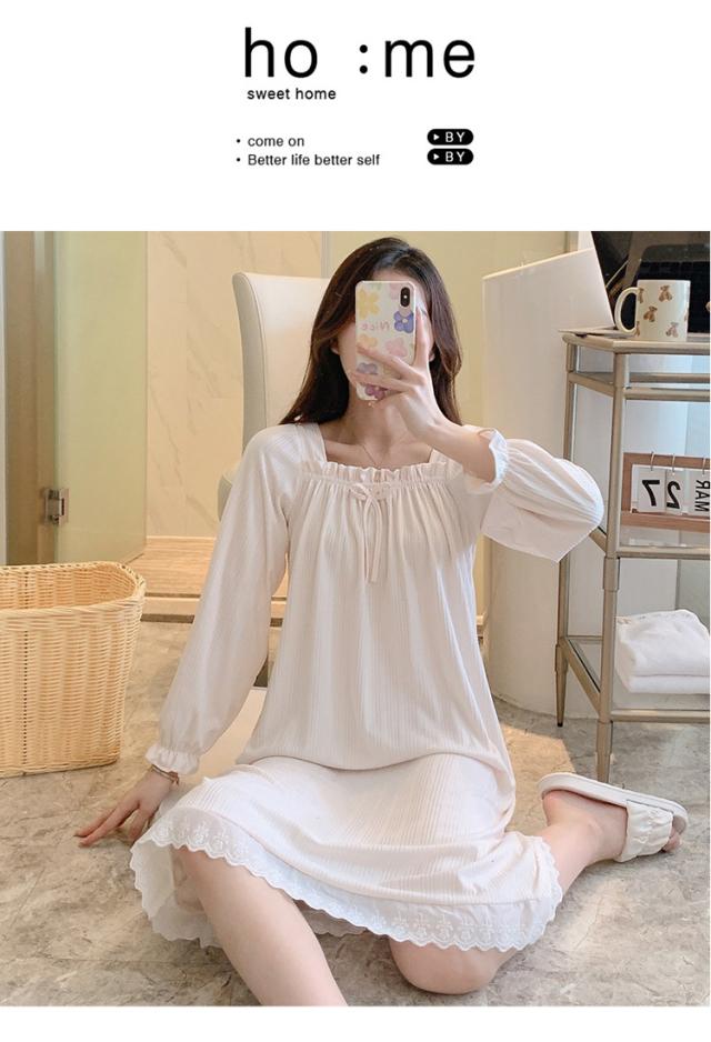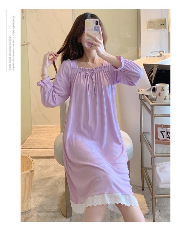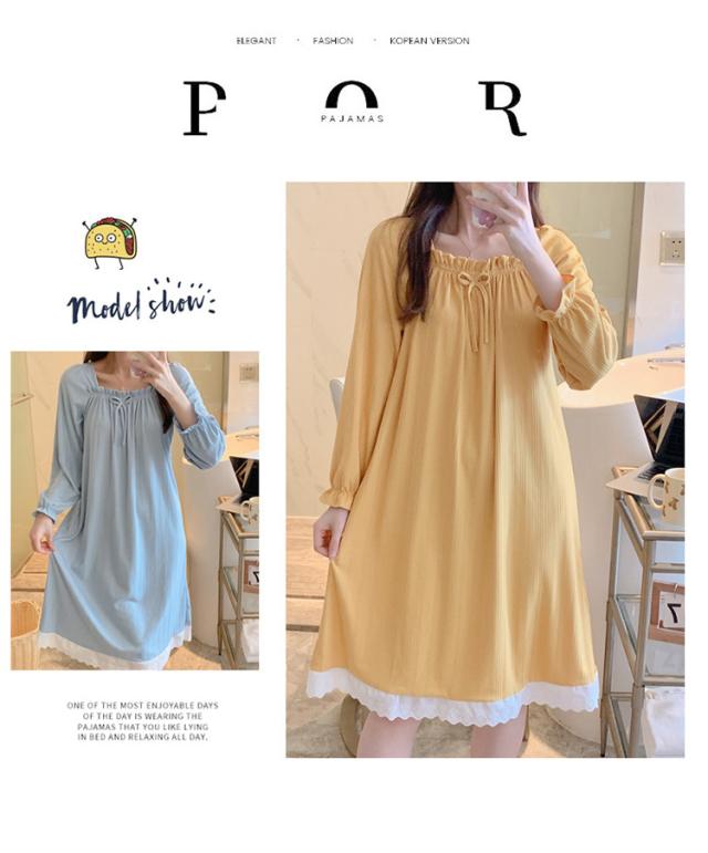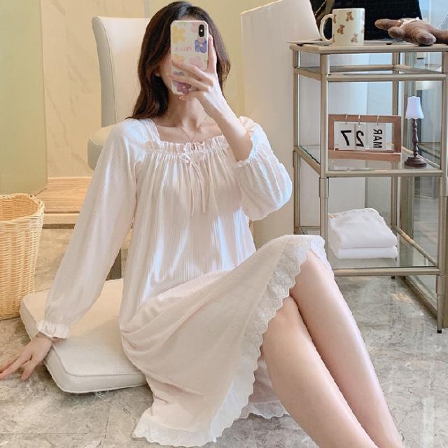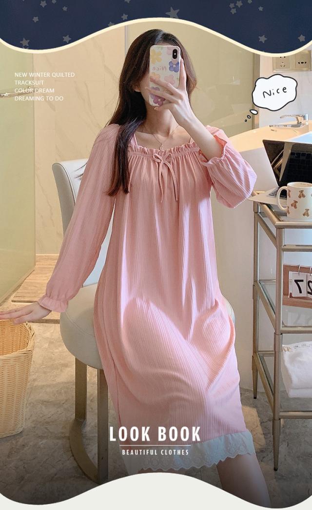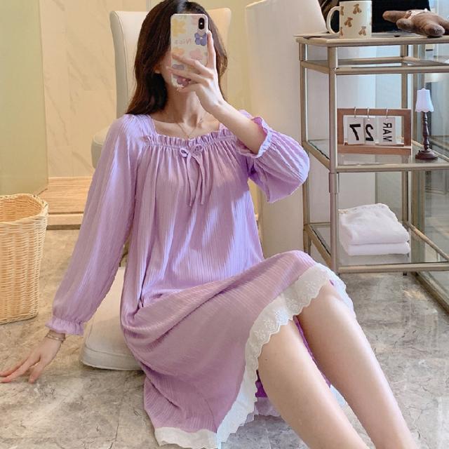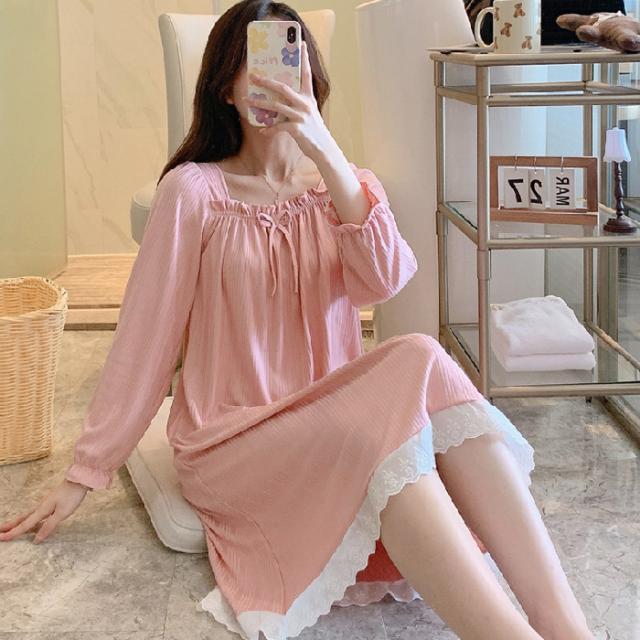 ネグリジェ ルームウェア レディース パジャマ ワンピース ルームワンピース 可愛い 春 秋 冬 寝巻き 柔らか ロング丈 ナイトウェア ゆったり 姫 部屋着 女性パジャマ