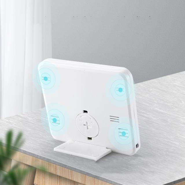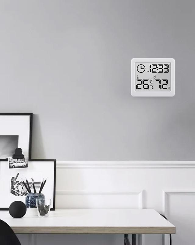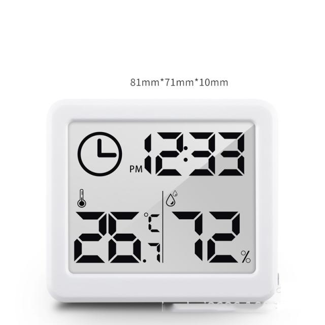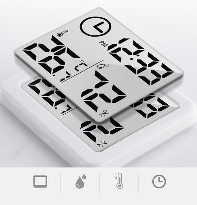 | お部屋のコンディション管理に便利なデジタル温湿度計が新登場。 小さくても画面が大きめに設計されているため、表示がみやすいです。 温湿度計は手のひらサイズなので置いても邪魔になりません。 バック部分は検出ホールがついて、10 秒ごとに測定する高速応答で、更新された正確な温度・湿度を提供します。 卓上スタンドと壁掛け用のテープが付き、卓上置きにも壁掛けにも対応できます。 時計機能付き、日常のお使いはもちろん、作業場所でも大活躍してくれます。 (時計設定ボタン) | |