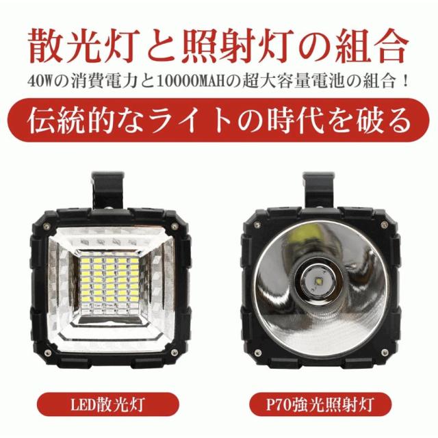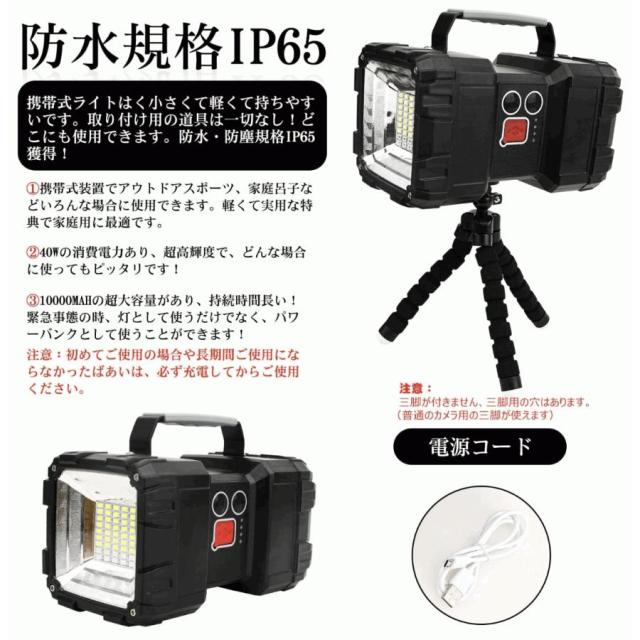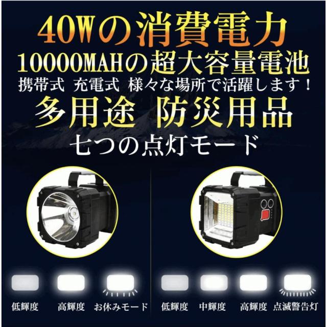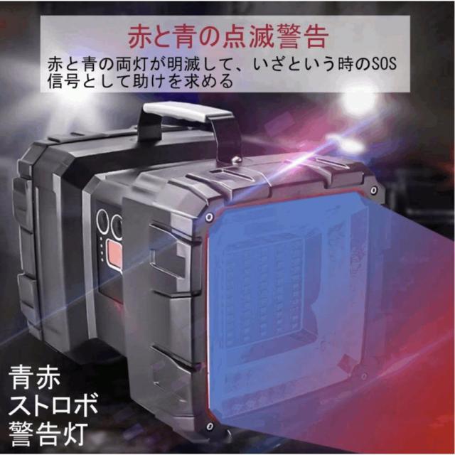 強⇒弱⇒ホワイトストロボモード(狭角側)強⇒中⇒弱⇒青赤警告灯モード(広角側) 突然の電力不足も安心!車両搭載や屋外使用も可能!キャンプ、アウトドア、夜間、乗用車やトラックでの積み卸し、現場工事、駐車場、集魚灯、作業灯にも様々な場所で活躍します!