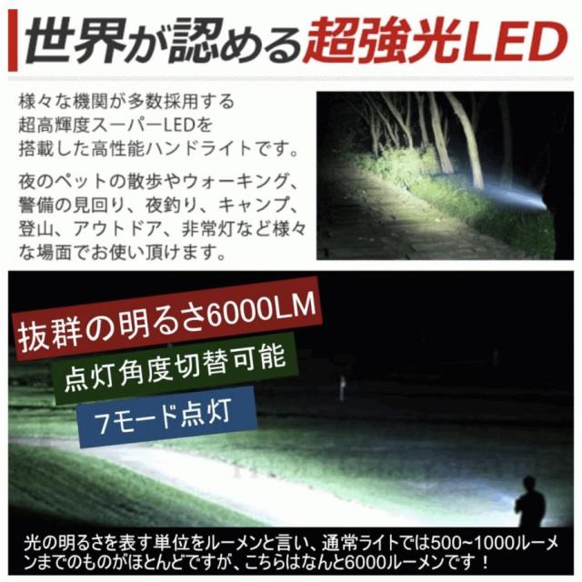 懐中電灯 led 超強力 最強 超高輝度 サーチライト 7モード調光 一台3役 usb充電式給電 防水 ハンドル付き ランタン 強力充電式LED懐中電灯