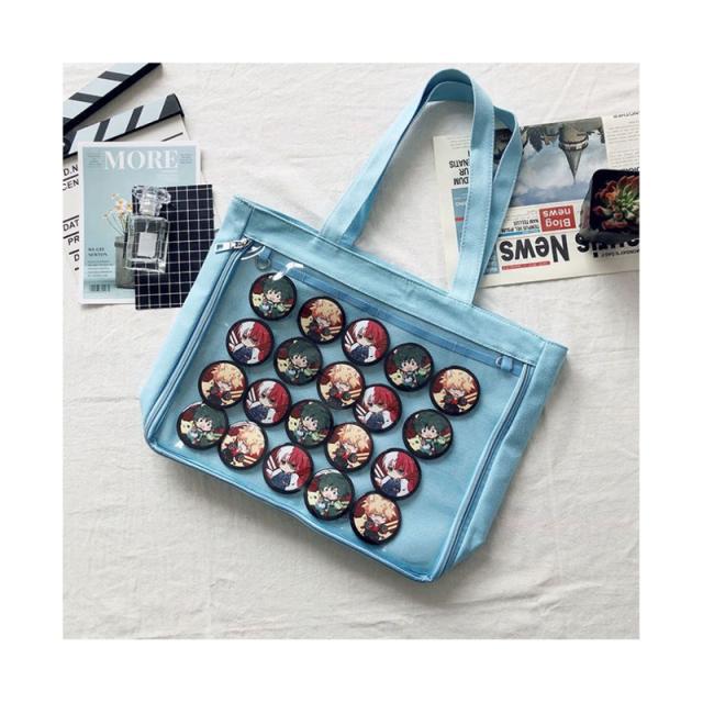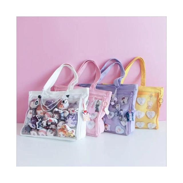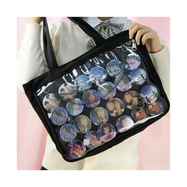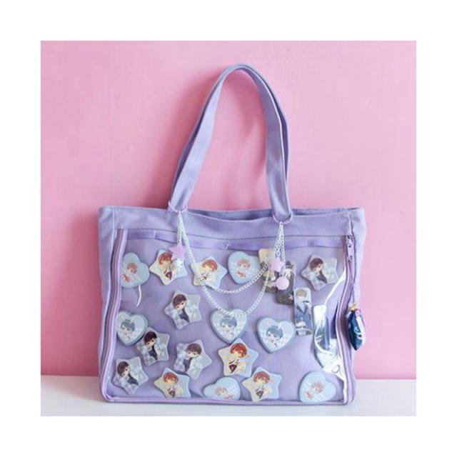 クリア トートバッグ 痛バッグ スクールバッグ トート 10代 学生 大きい a4 キャンバス 軽量 通学 バック カバン 送料無料 痛バ シンプル キレイめ カジュアル おしゃれ 女子