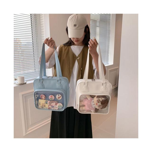 見せバッグ クリアバッグ 送料無料 高校通学カバン 透明 痛バッグ 痛バ ショルダーバッグ かわいい バッグ 見せる JK 女子高生 アニメイト 軽量 肩掛け ぬいぐるみ 女子高校生 装飾 軽い