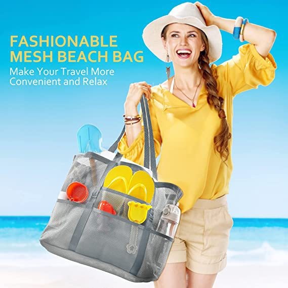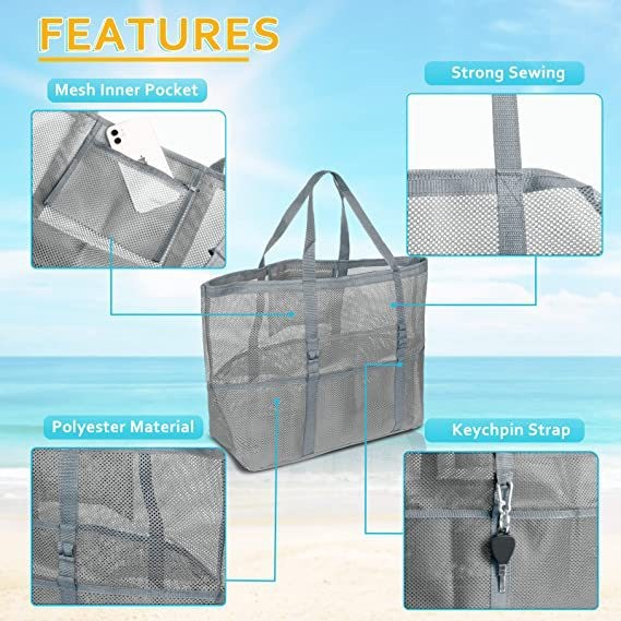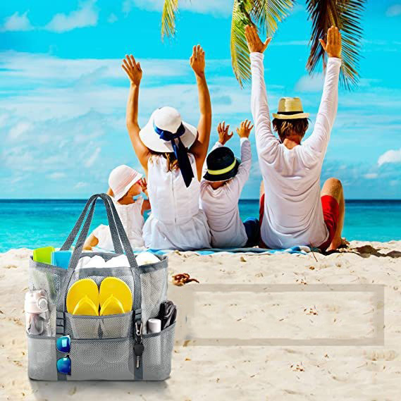 メッシュバッグ 大容量 着替え収納 トートバッグ 多ポケット 折り畳み 手提げ 砂場 海遊び 水泳 海水浴 ビーチバッグ プールバッグ 旅行用 小物入れ