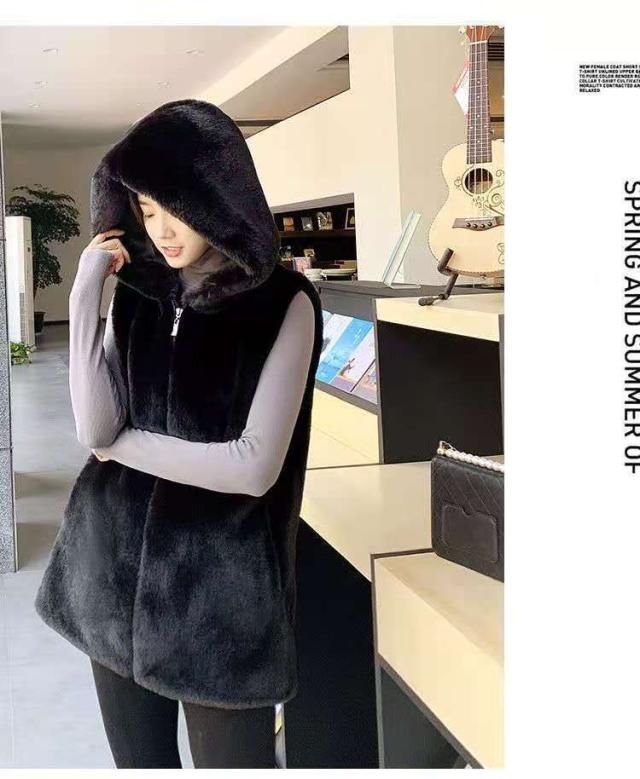 ふわふわ ファーベスト レディース フェイクファー ジレジャケット フード付き ロングベスト 毛皮コート ふわふわ 暖かい 秋冬コート 無地 防寒 高級感 通勤 OL