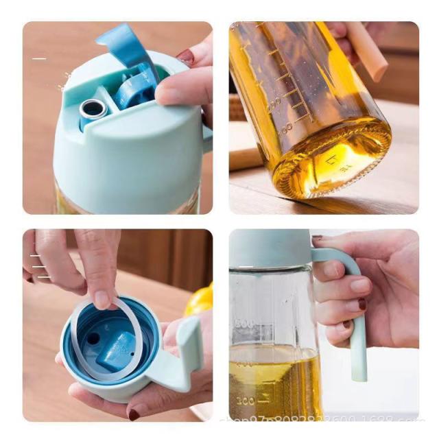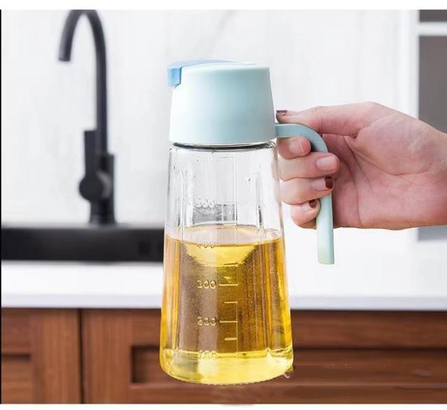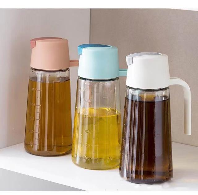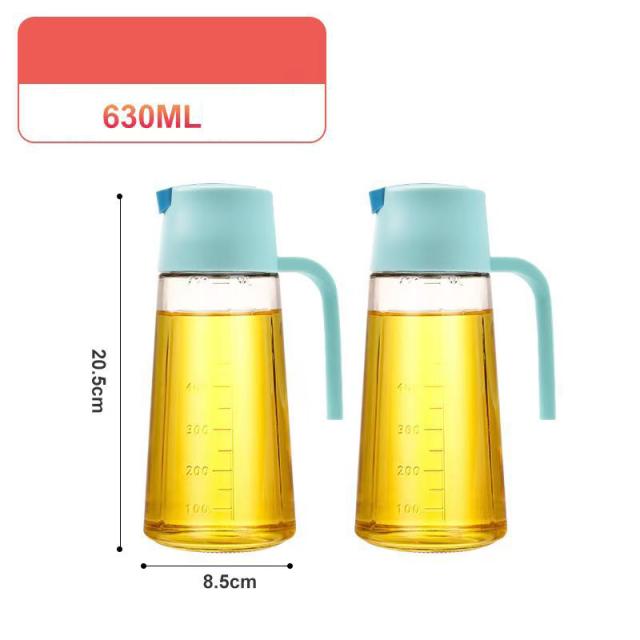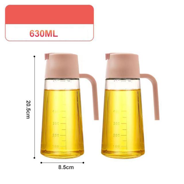 2本セット オイルボトル 630ml 自動開閉 液だれしない 目盛り付 漏れ防止 ガラス オイルポット 油差し ビネガーボトル 大容量 おしゃれ
