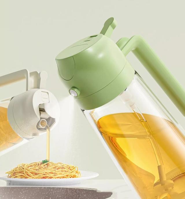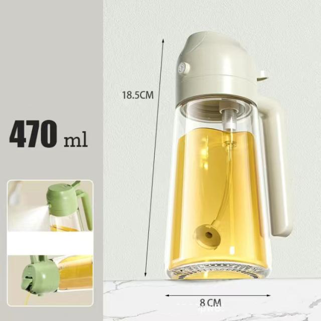 両用 オイルボトル オイルスプレー 470ml 液だれしない 霧吹き 2way 調味料入れ オイル差し 油差し 酢 醤油ボトル 透明ガラス おしゃれ