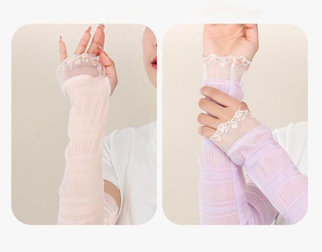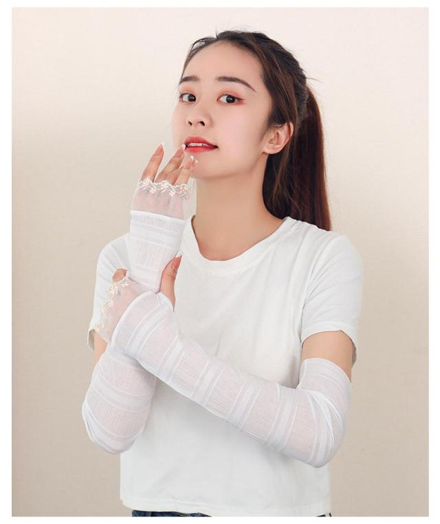 シアー アームカバー レース 手袋 冷感 UVカット UPF50+ 冷え対策 日焼け防止 レディース 夏用 涼しい 可愛い エレガント きれいめ