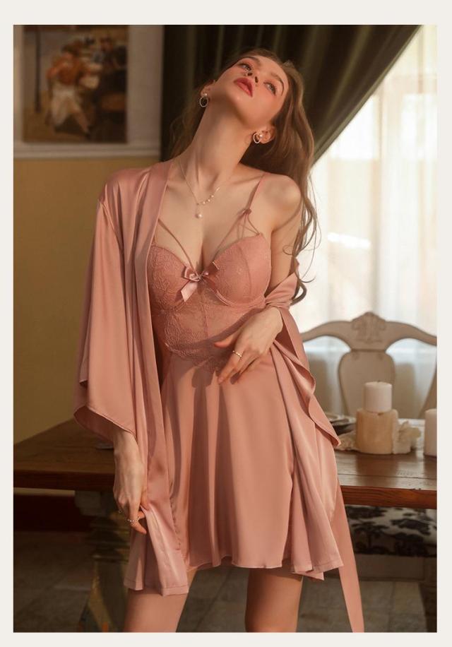パジャマ セクシーランジェリー スリップ ガウン+キャミワンピセット ベルト付き インナー レース ガウン ワンピース レディース バレンタイン 大人