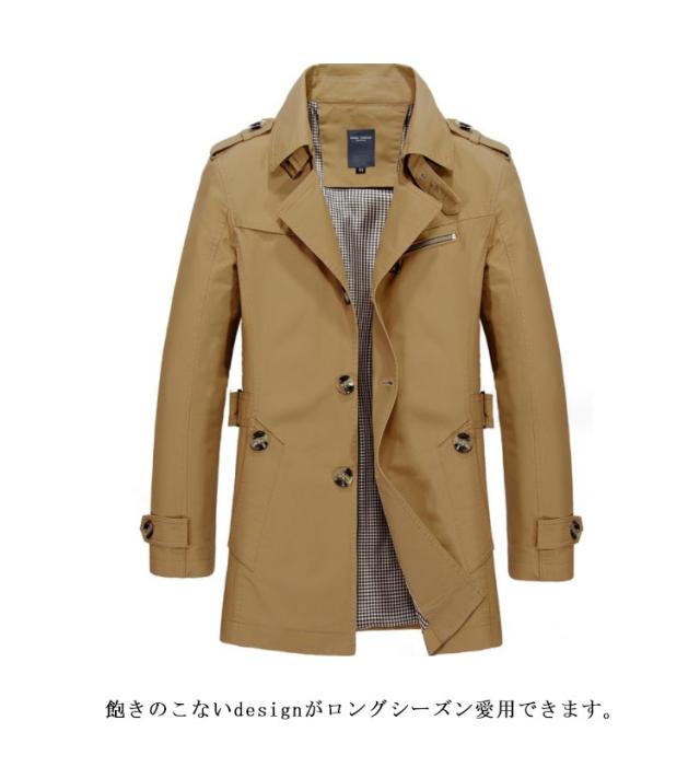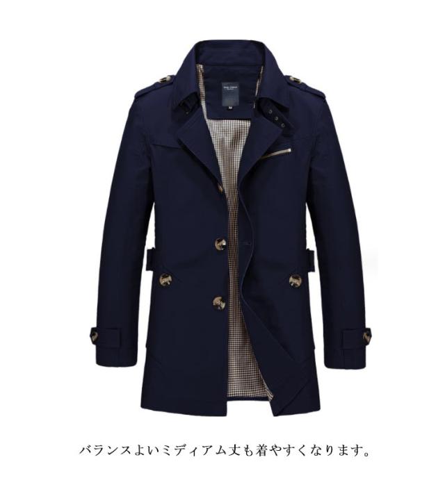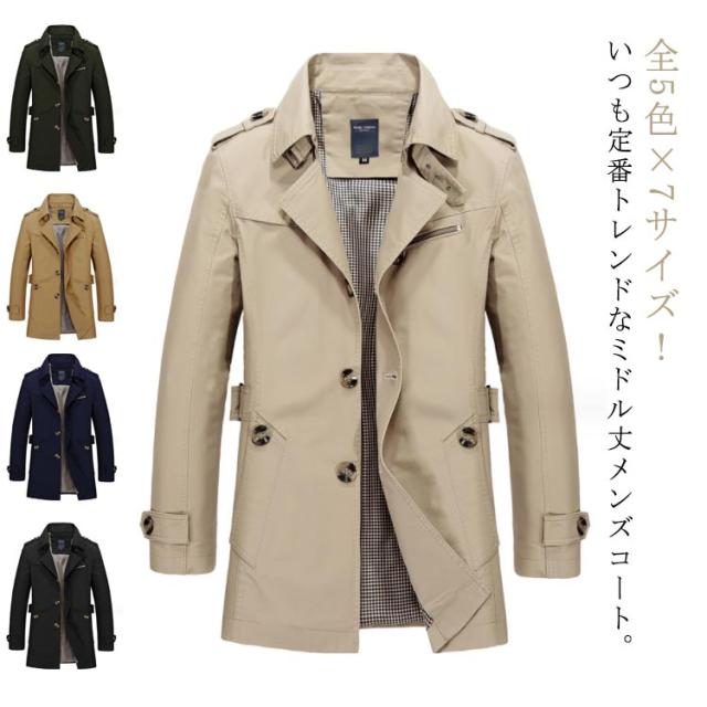 トレンチコート メンズ スプリングコート 送料無料 春 秋 薄手 上質 コート ミディアム丈 ジャケット ビジネスコート お兄系 通勤 紳士服 カジュアル 大きいサイズ おしゃれ 男性 スリム アウター 黒 ブラウン カーキ ネイビー ベージュ M L XL 2XL 3XL 4XL 5XL