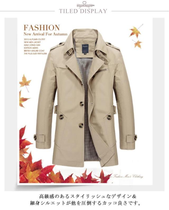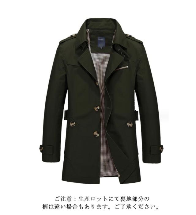 | 全5色×7サイズ!いつも定番トレンドなミドル丈メンズコート。 高級感のあるスタイリッシュなデザイン&細身シルエットが他を圧倒するカッコ良さです。 しっかりとしたコットン素材で防風効果抜群。 バランスよいミディアム丈も着やすくなります。 飽きのこないdesignがロングシーズン愛用できます。 ご注意:生産ロットにて裏地部分の柄は違い場合もあります。ご了承ください。 | |