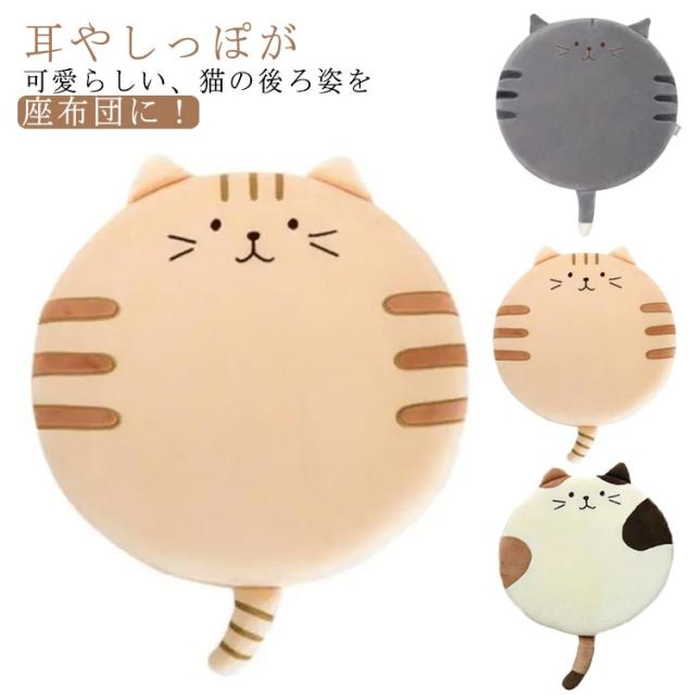 送料無料 チェアパッド 低反発 座布団 猫 動物 アニマルズ フロアクッション 可愛い 丸 おしゃれ 円形 コンパクト 猫クッション 北欧 シンプル 椅子用 ソファー用 テレワーク おうち時間