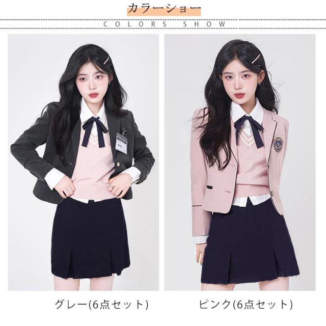 韓国 制服 6点セット ブレザー スカート ベスト シャツ リボン バッジ セット 女子高生 卒業式スーツ 入学式 スーツ レディース 女子 学生服 学生制服 JK制服 韓国 高校生制服 制服コスプレ お洒落 スクール 卒業式 発表会 ハロウィン コスプレ 仮装 コスチューム
