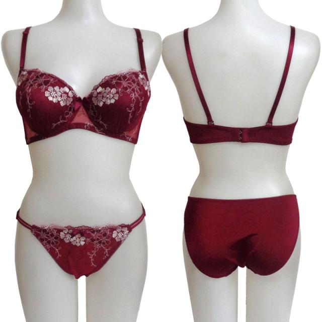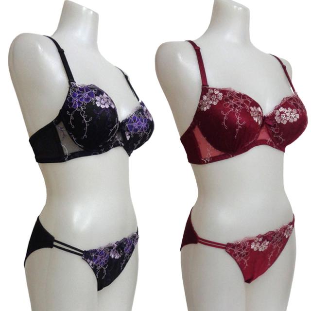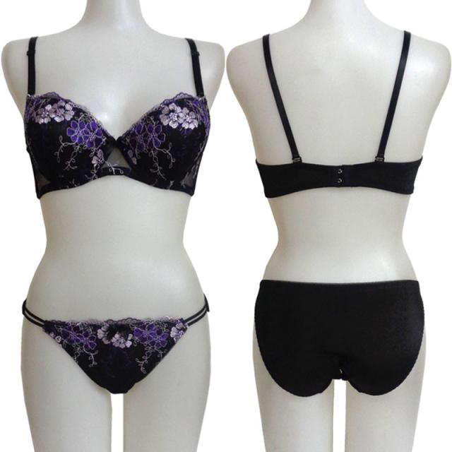 ブラジャーとショーツの前見頃にエレガントな花柄チュールレースを仕様