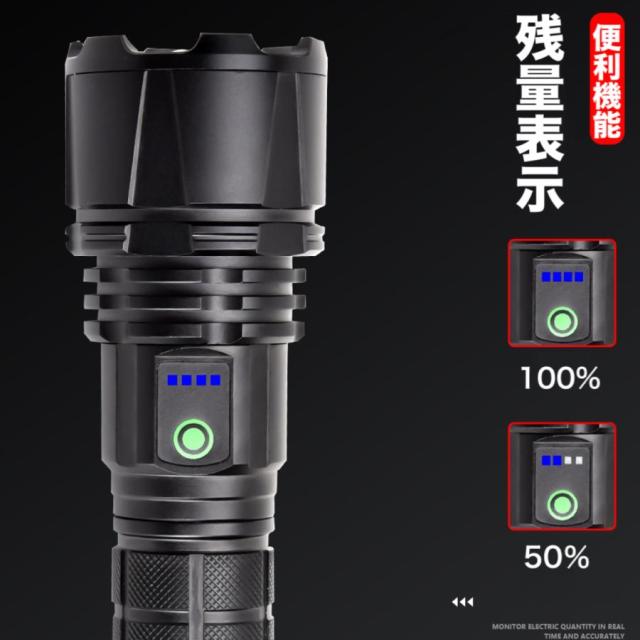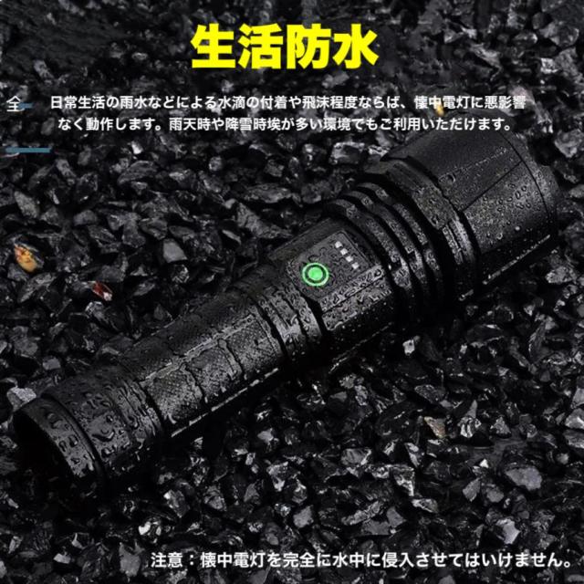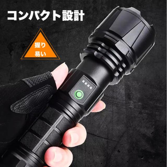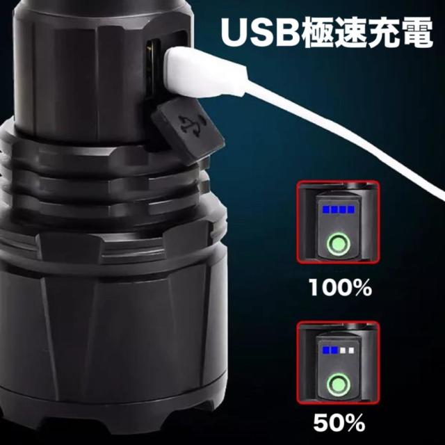 LED 懐中電灯 超高輝度 ハンディライト USB充電式 リチウムイオン電池付き SOS点滅 停電 P90スーパーCREEチープ IPX67防水 防災 強力 軍用 PSE認証