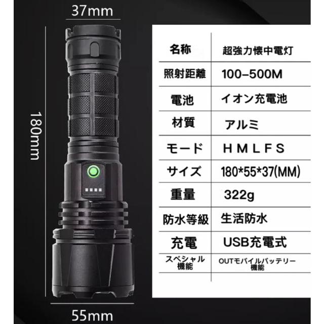 車のヘッドライトに匹敵します。 広い範囲の照明、500メートルまでの長い範囲の照明、ボディは軍用航空グレードのアルミ合金材料を使用しています。