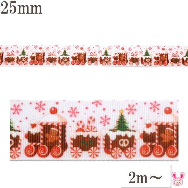 プリントリボン クリスマス ジャーマンクッキーとお菓子の列車リボン 幅25mm 1m単位 切り売り (2m以上)