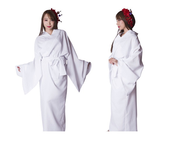 UNISEX 花鳥風月 着物無地白 和風 古風 日本 お着物 仮装 衣装 コスプレ コスチューム ハロウィン パーティ アキバ系 イベント かわいい