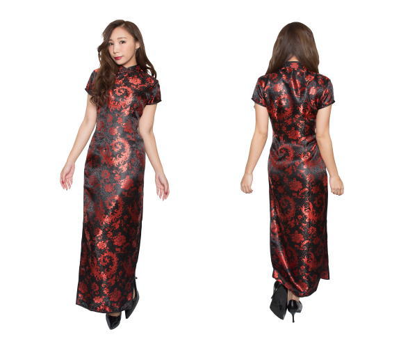レディ ロングチャイナ 羽 黒M チャイナ服 チャイナガール ガール ハロウィン 衣装 仮装 コスプレ コスチューム イベント 宴会 パーティ 集団 集団仮装 集団コスプレ かわいい