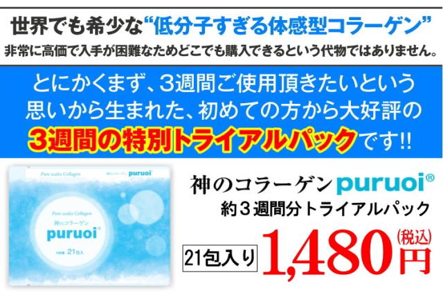 低分子 コラーゲン プルオイ ナノコラーゲン 約3週間分 21包入り コラーゲンペプチド puruoi 魚鱗 フィッシュコラーゲン