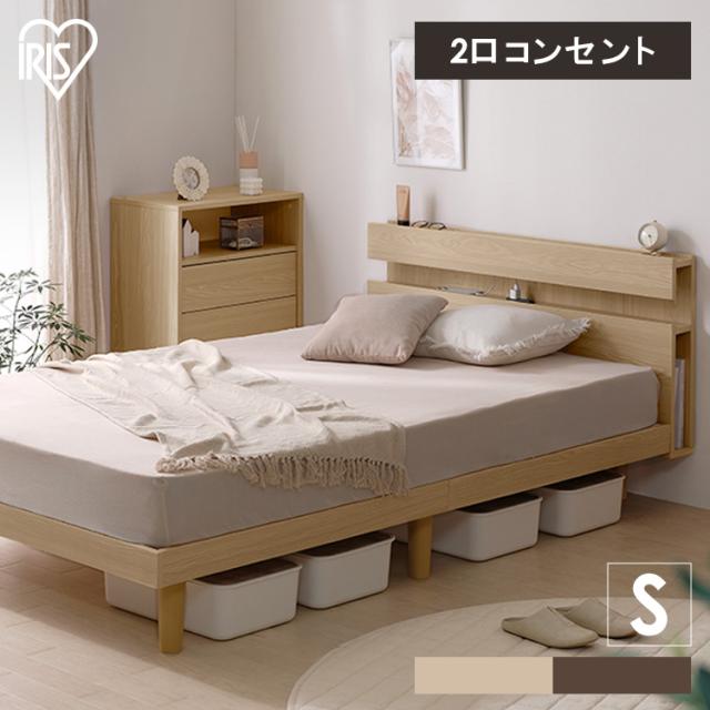 ベッド シングル すのこベッド ベッドフレーム ローベッド フレーム 脚付き おしゃれ ヘッドボード 宮付き 棚 多機能 収納 2口コンセント付き 通気性 湿気対策 スノコ シングルベッド ベット 一人暮らし 新生活 アイリスオーヤマ SNBS-S *