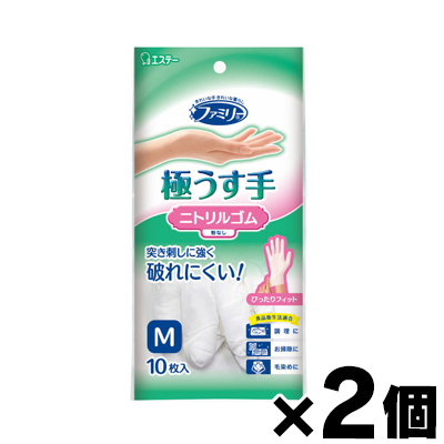 【メール便送料無料】ファミリー ニトリルゴム 極うす手 M ホワイト 10枚入×2個セット 4901070760985*2