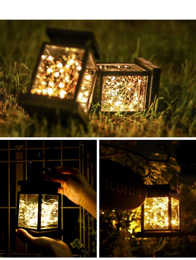 ガーデンライト ソーラーライト led【takumu】 ランタン アンティーク 吊り下げ 四角形 ワイヤーライト 置き型 照明 室外 室内 明るい おしゃれ ソーラー 充電式 太陽光 LEDライト 自動点灯 庭 消灯 玄関 イルミネーション