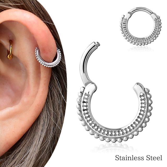 ワンタッチピアス 16g ドット Lot ステンレスピアス つけっぱなし クリッカー セグメントリング ボディピアス セプタム ロブ ヘリックス 軟骨ピアス