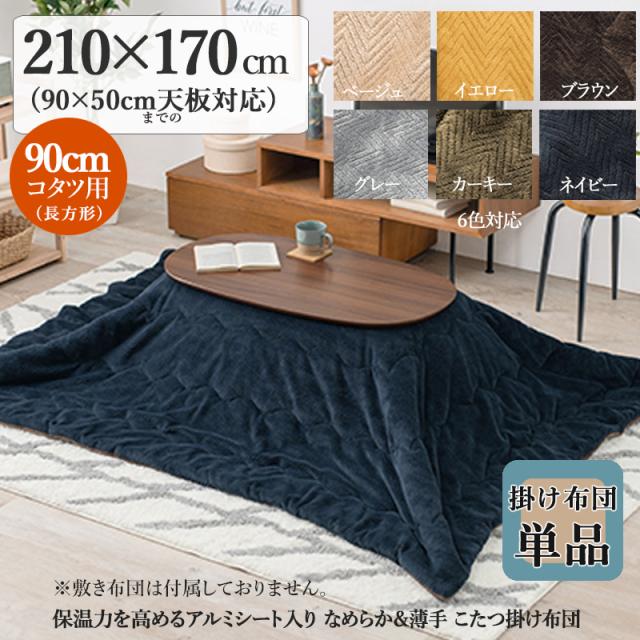 薄掛け こたつ布団 単品 幅210 奥行170cm (長方形) ネイビー色 全6色 アルミシート入 コタツ布団 掛布団 90×50cmこたつ用 PIQUE