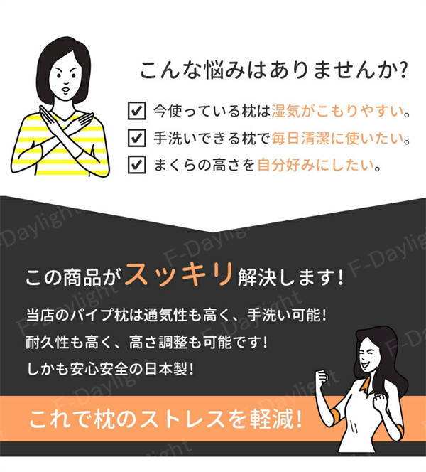 - 熱がこもるのが嫌なのでいつもパイプ枕を使っています。 この枕は結構良いです。最初は柔らかすぎると思いましたが、補充パイプを追加したら、良い感じになりました。