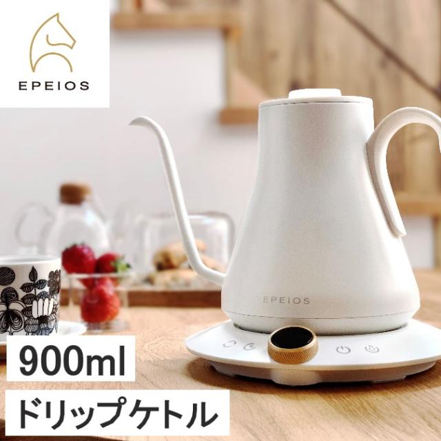 EPEIOS エペイオス ドリップケトル ホワイト EPCP001WH 送料無料 電気ケトル 温度調節 900ml ドリップケトル ホワイト 0.9L 1℃単位調整 5分タイマー 保温機能 空焚き防止 細口 ドリップ コーヒーケトル ポットコンパクト